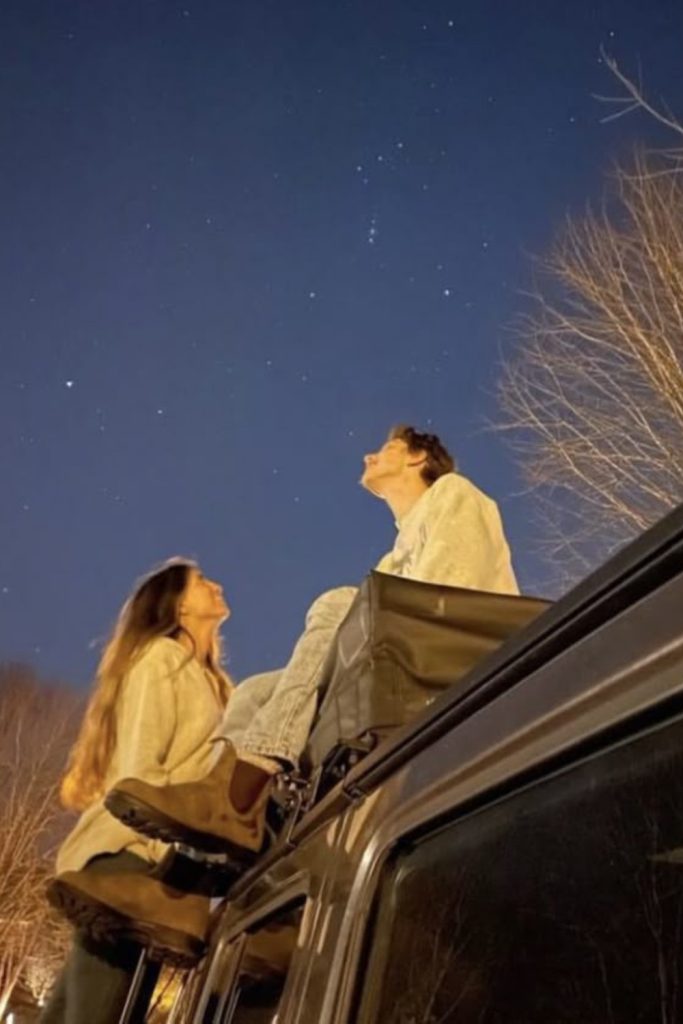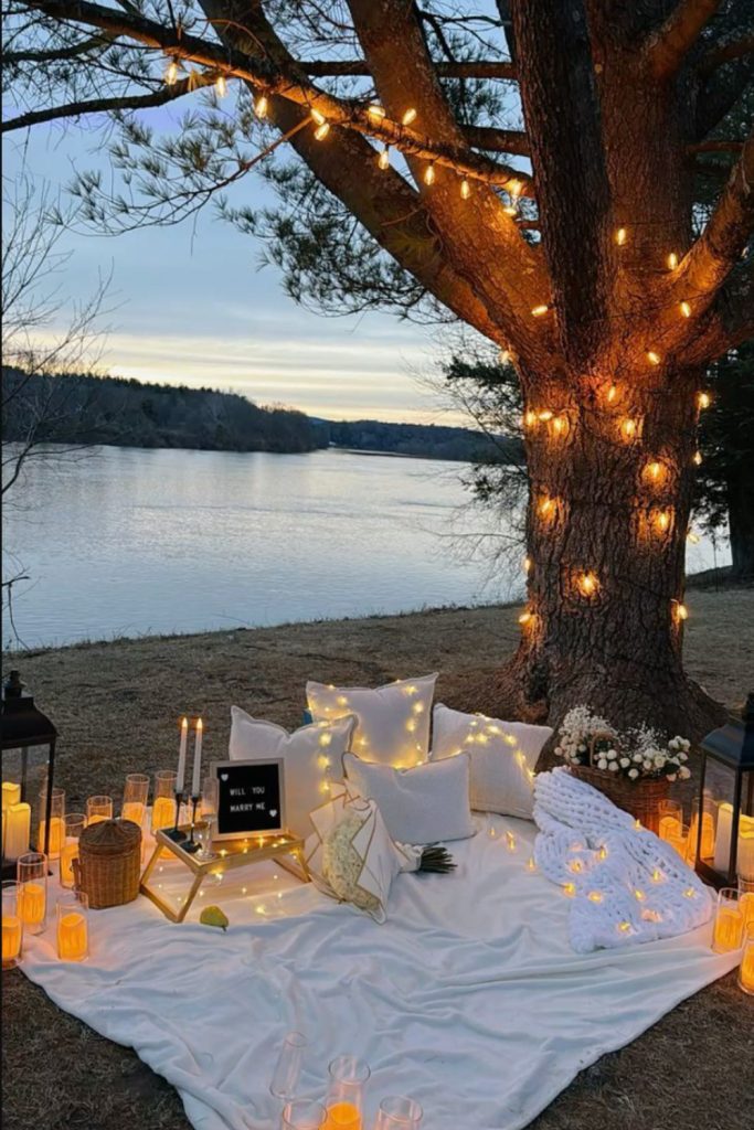 Blankets, fairy lights, easy snacks, and the night sky. It feels intimate and cinematic without needing much planning.